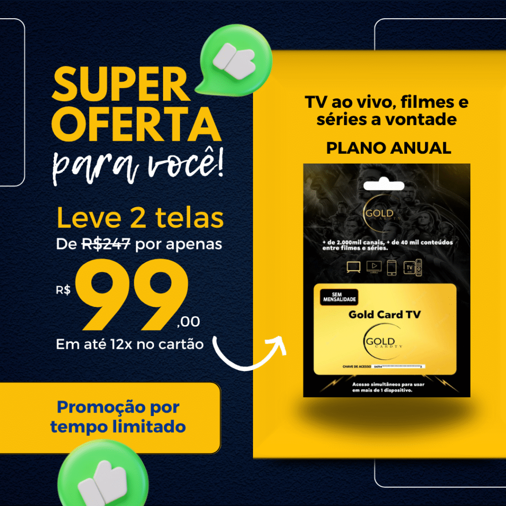 O GOLDCARD é um cartão virtual com acesso à conteúdos de tv, filmes e séries.